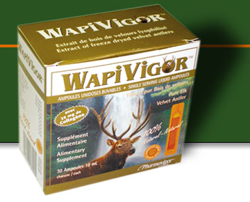 WapiVigor is a liquid alimentary supplement containing extract of freeze dried velvet antlers.